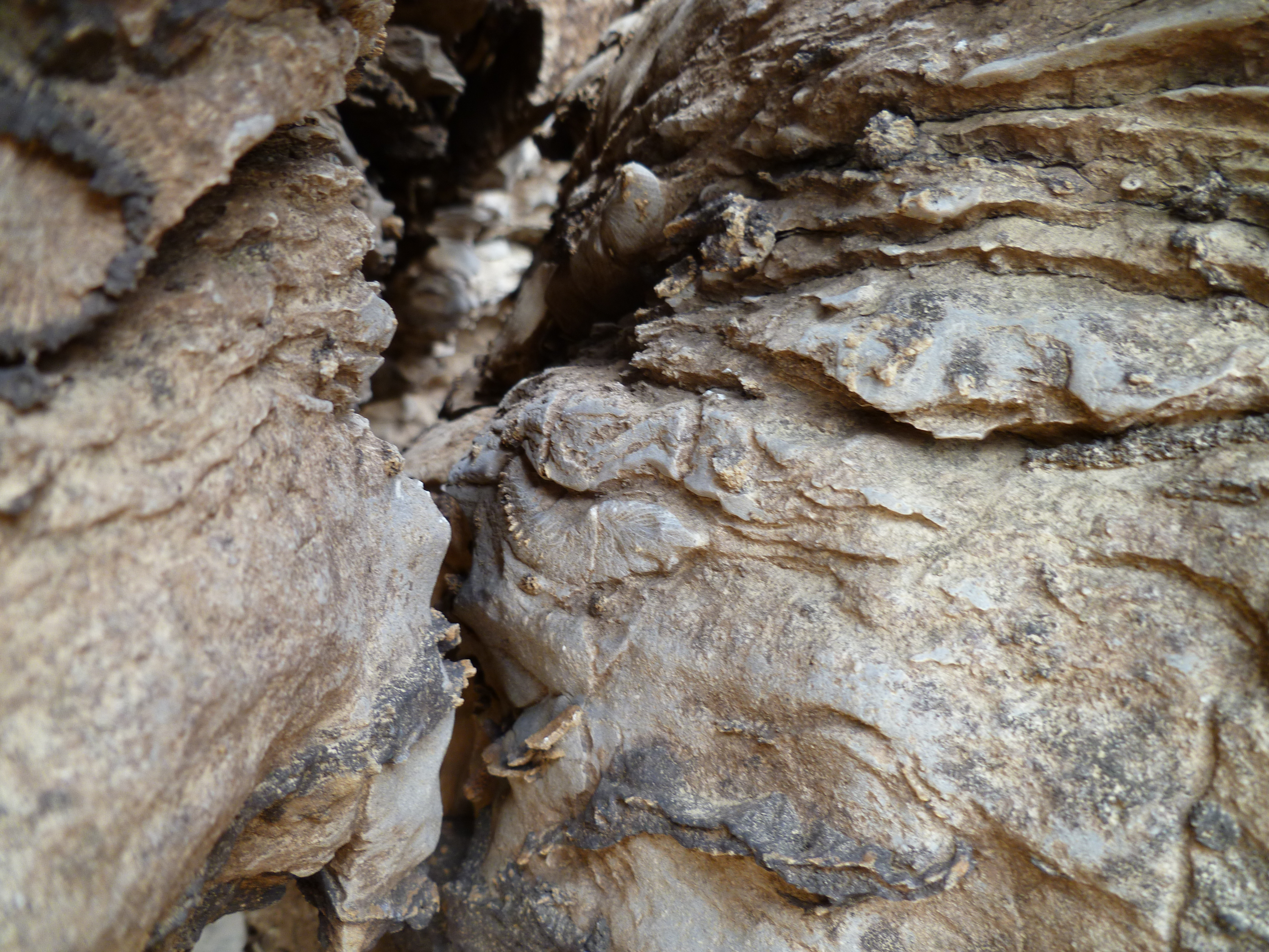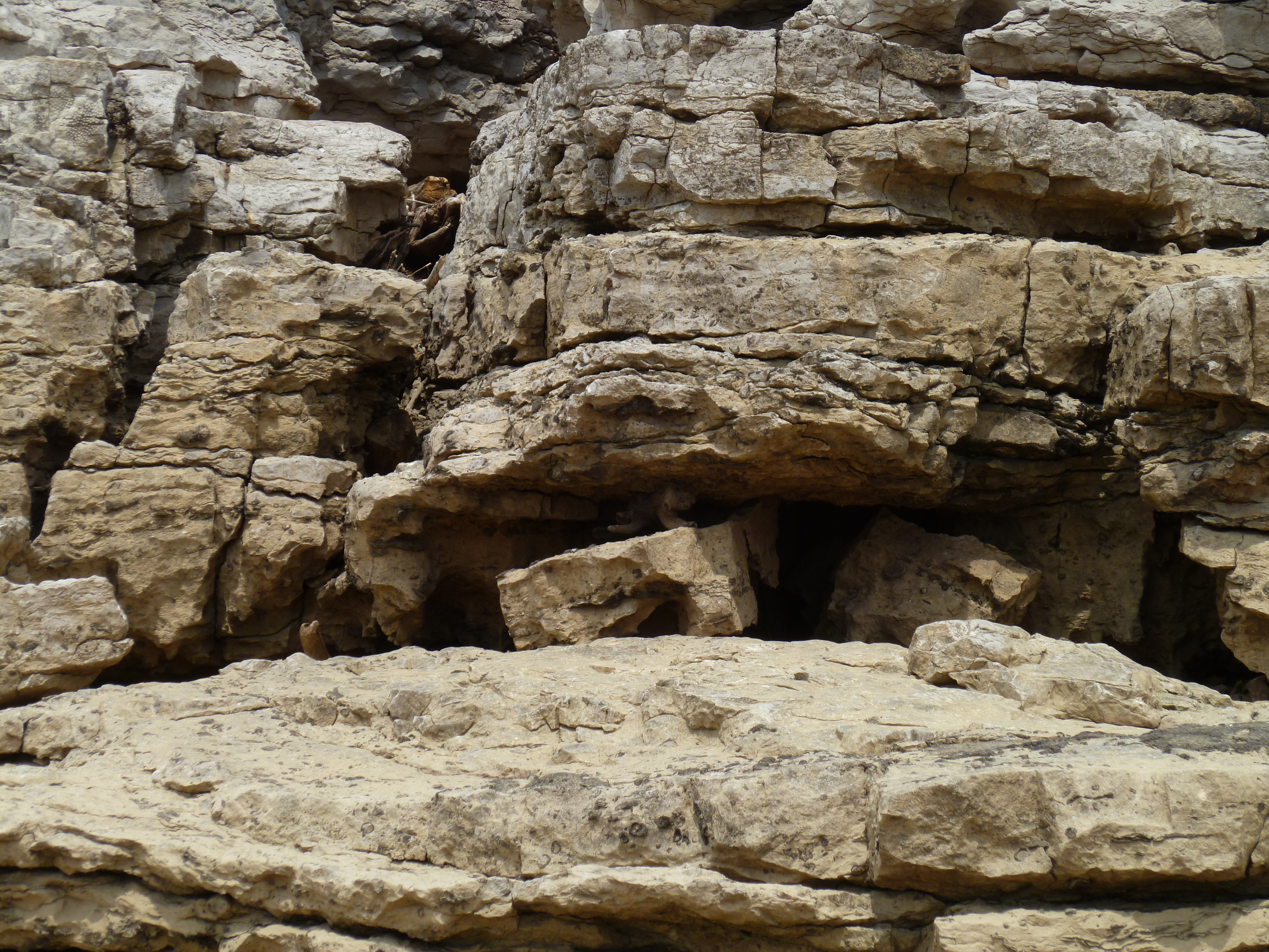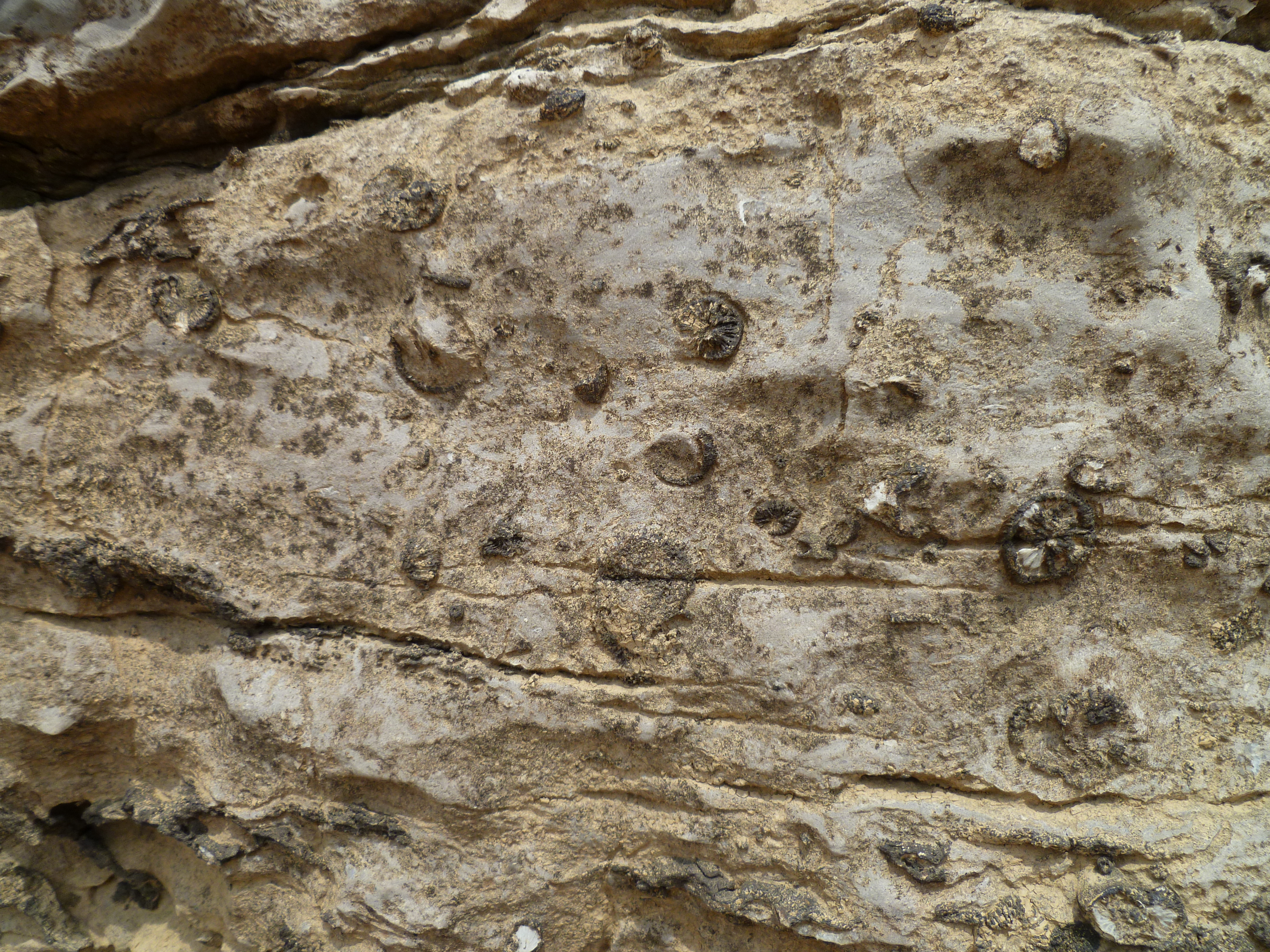 Underfoot, I could see the remains of coral, sponges, brachiopods, arthropods and so on. Along the banks, or walls of the limestone deposits are layers that you can look into and see how the sediments were laid down.