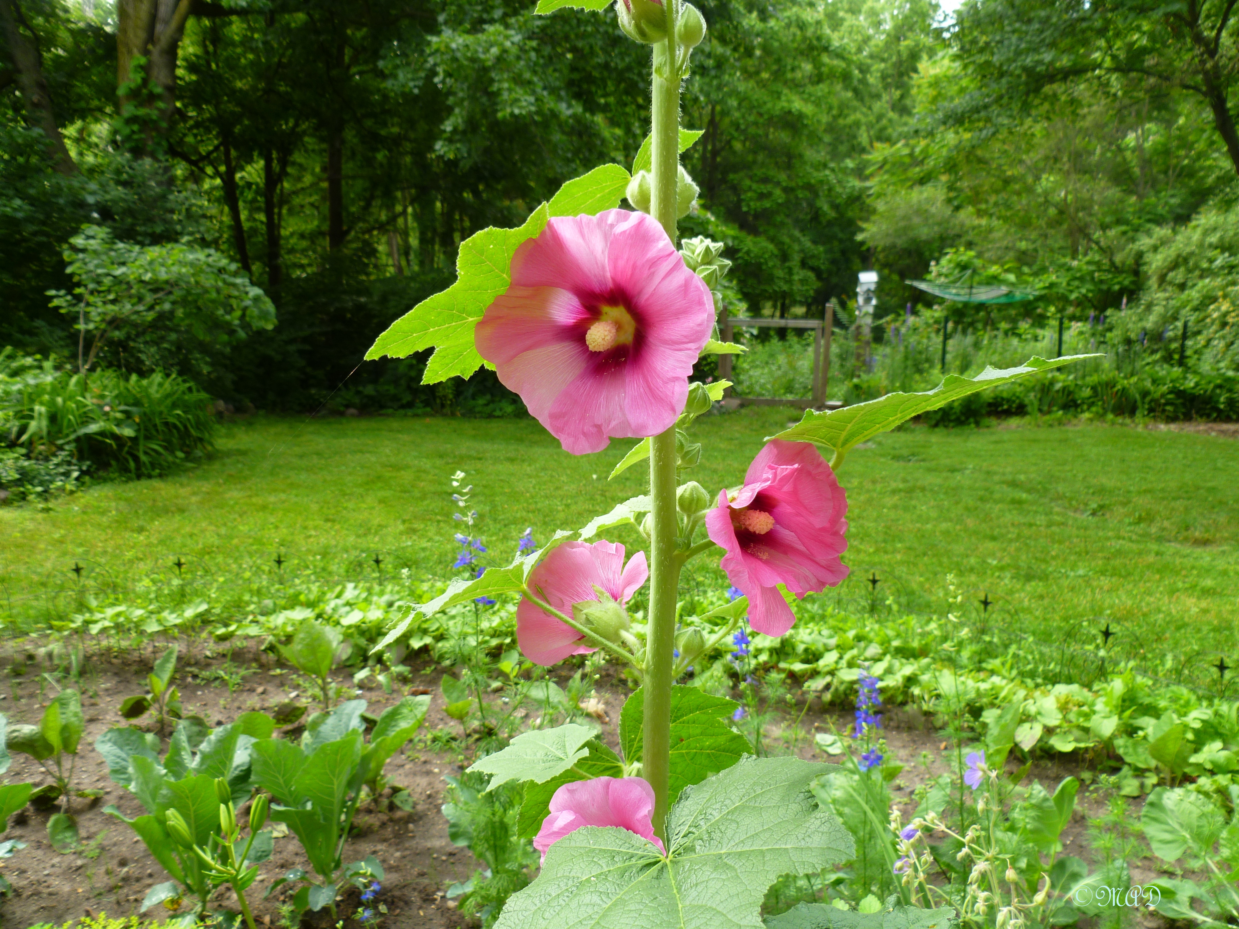 Baby hollyhocks – I’ve finally got them established, blooming and thriving!