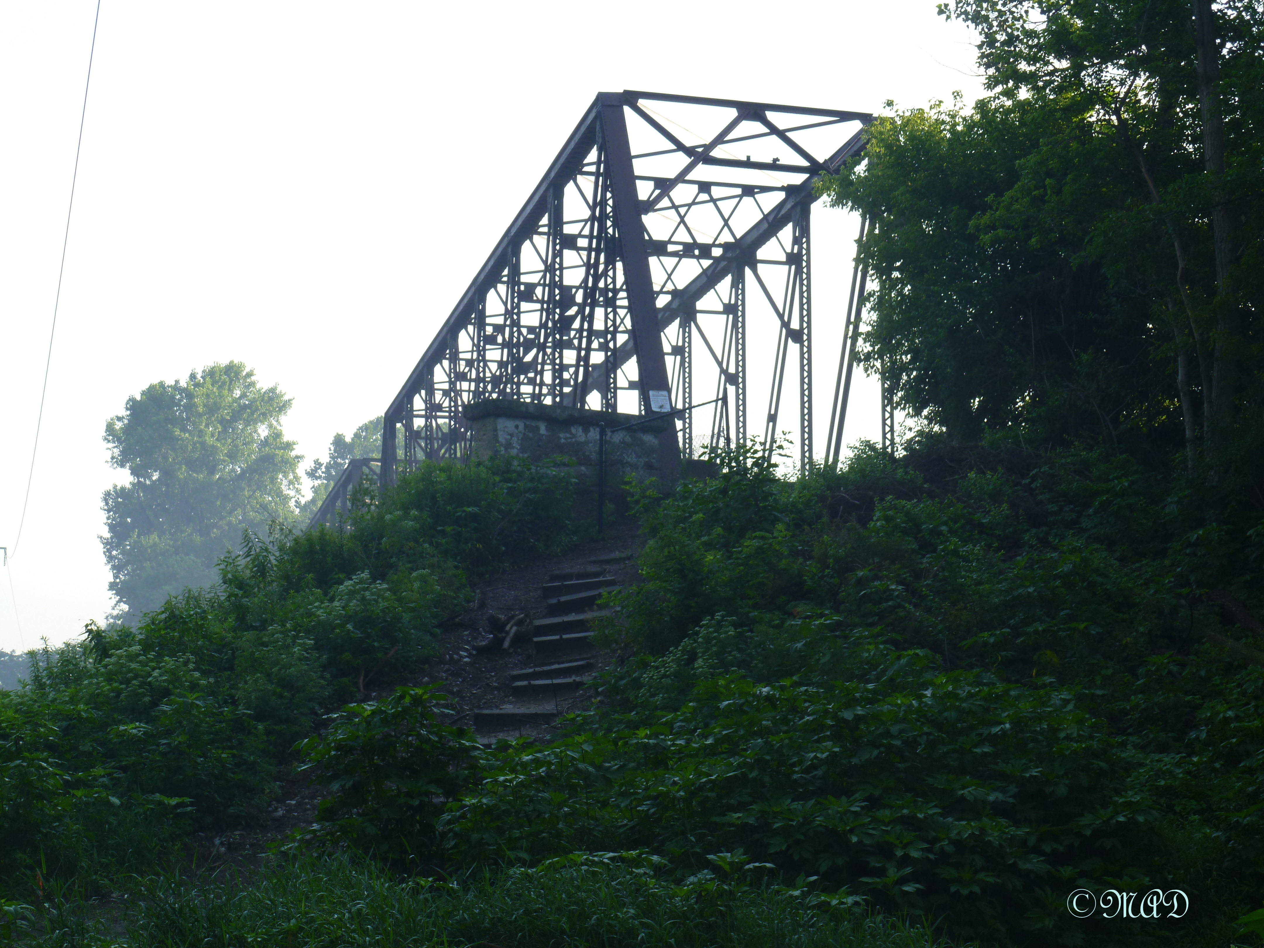 Bridge One:  private 052 Was built long ago, as a replacement for Davis Ferry over the Wabash River in Tippecanoe County, Indiana. The Ferry was used by Indians and Pioneers for years, sometimes providing hazardous crossings during springtime floods. The bridge made it less risky trying to get home. It is now a walking bridge, a pathway to the Wabash Heritage Trail and a pleasant one at that.