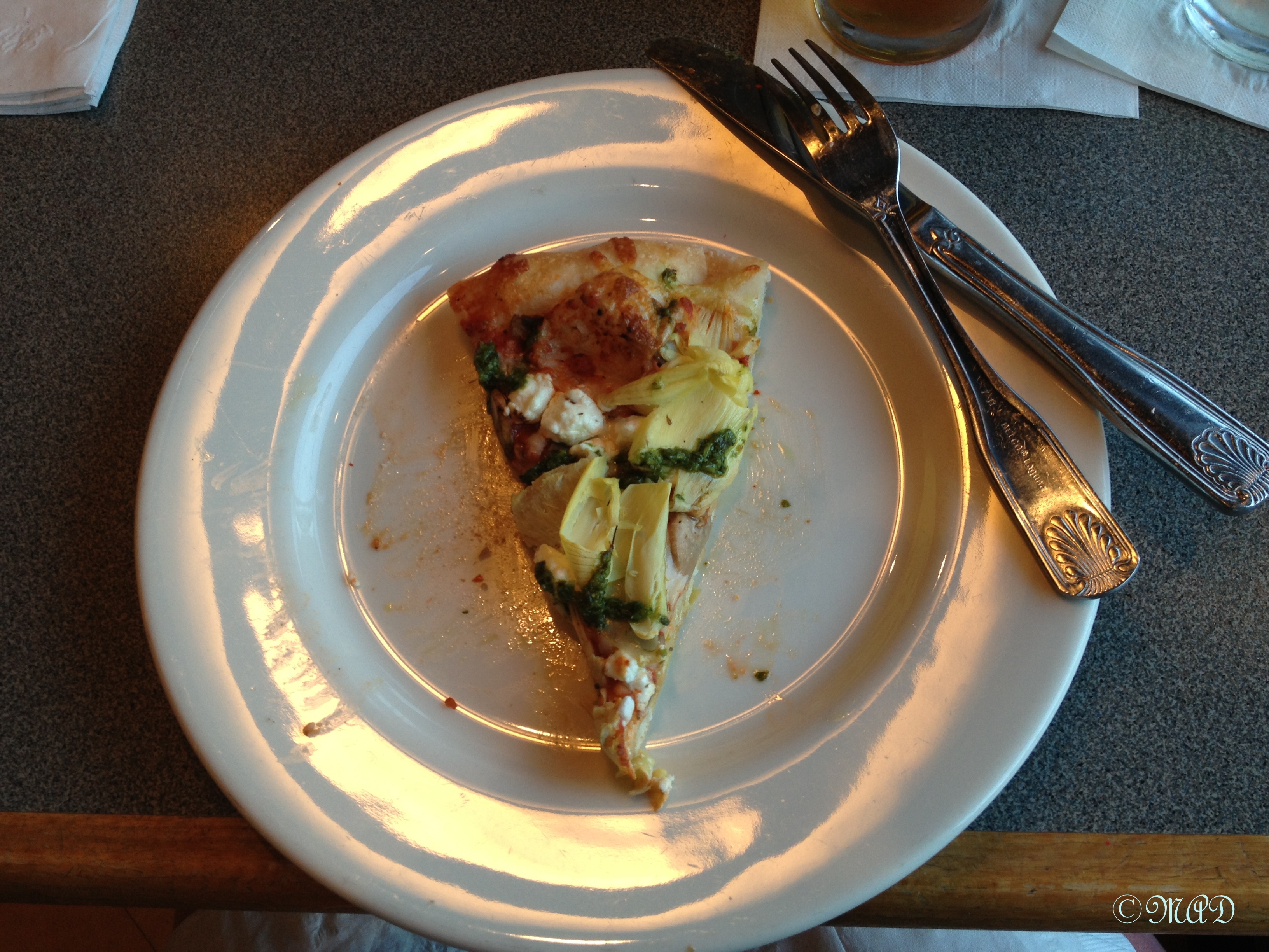 Can you believe it? We SHARED one piece! We were so full from eating the pizza, sharing seemed the better thing to do.