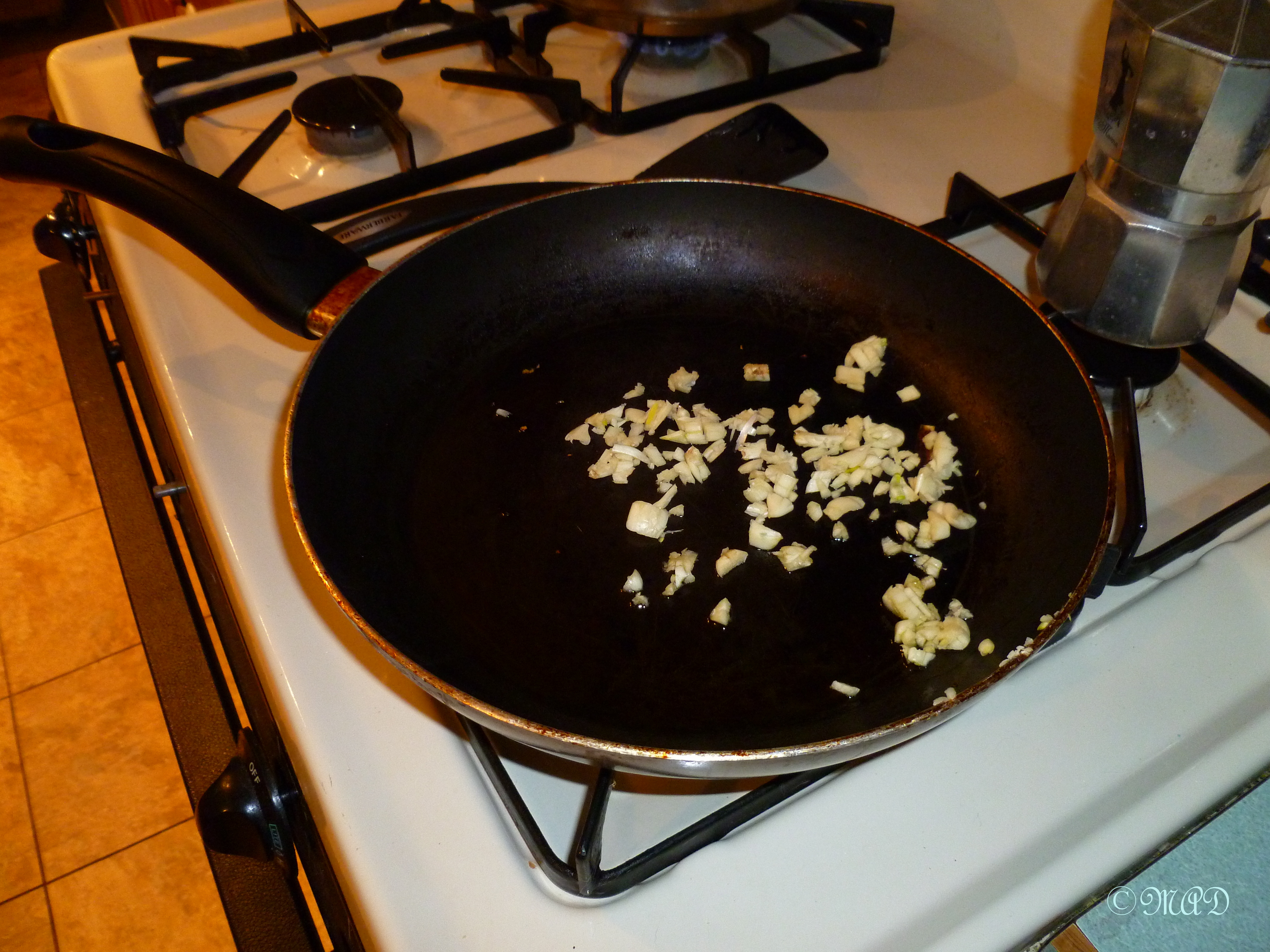 Because I added garlic, I sauteed the garlic first in a little bit of extra virgin olive oil.  If you add onions, sautee them at this time.