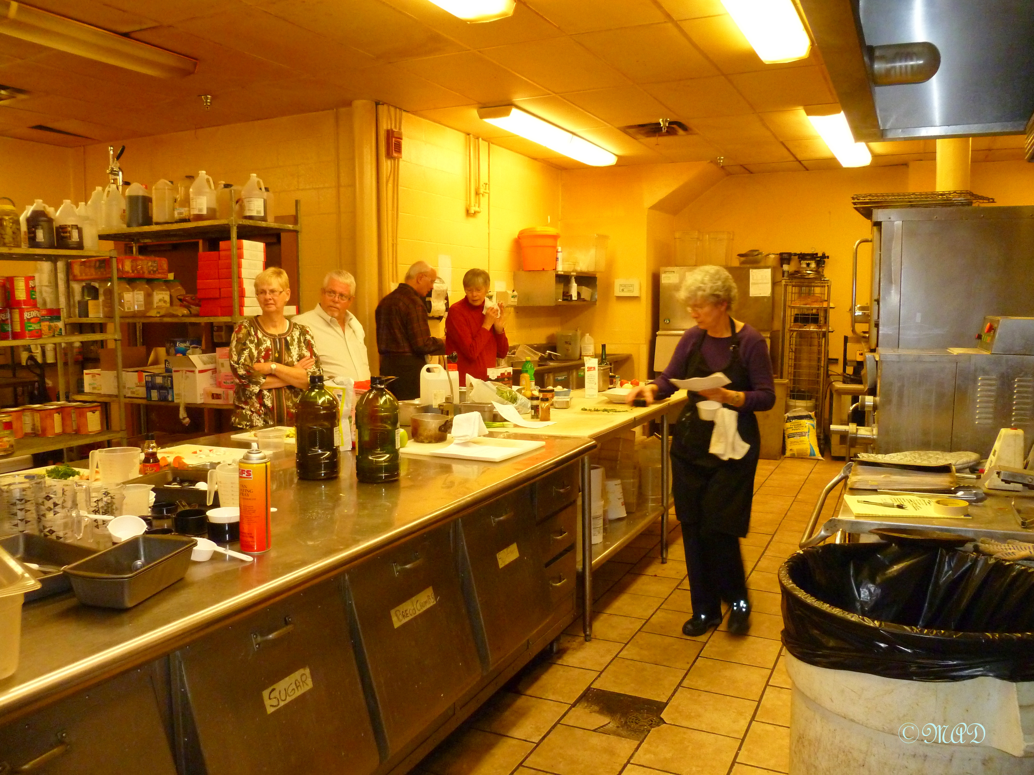 So, I signed up and last Tuesday night, I ventured out and learned all about French cooking.  It was sooooo much fun!  Quite serendipitously, I met a couple who are friends with the couple in Germany who helped my daughter get a job and move there this past summer.  We all came back home with 12 new recipes.  After arriving, we sat in a group until we were led back to the kitchen to wash our hands.  Then we filed into the work stations and selected a recipe to work on, read over the recipe and diced, chopped and mixed before carrying our ingredients either to the oven or to the stove top to cook over the flame.
