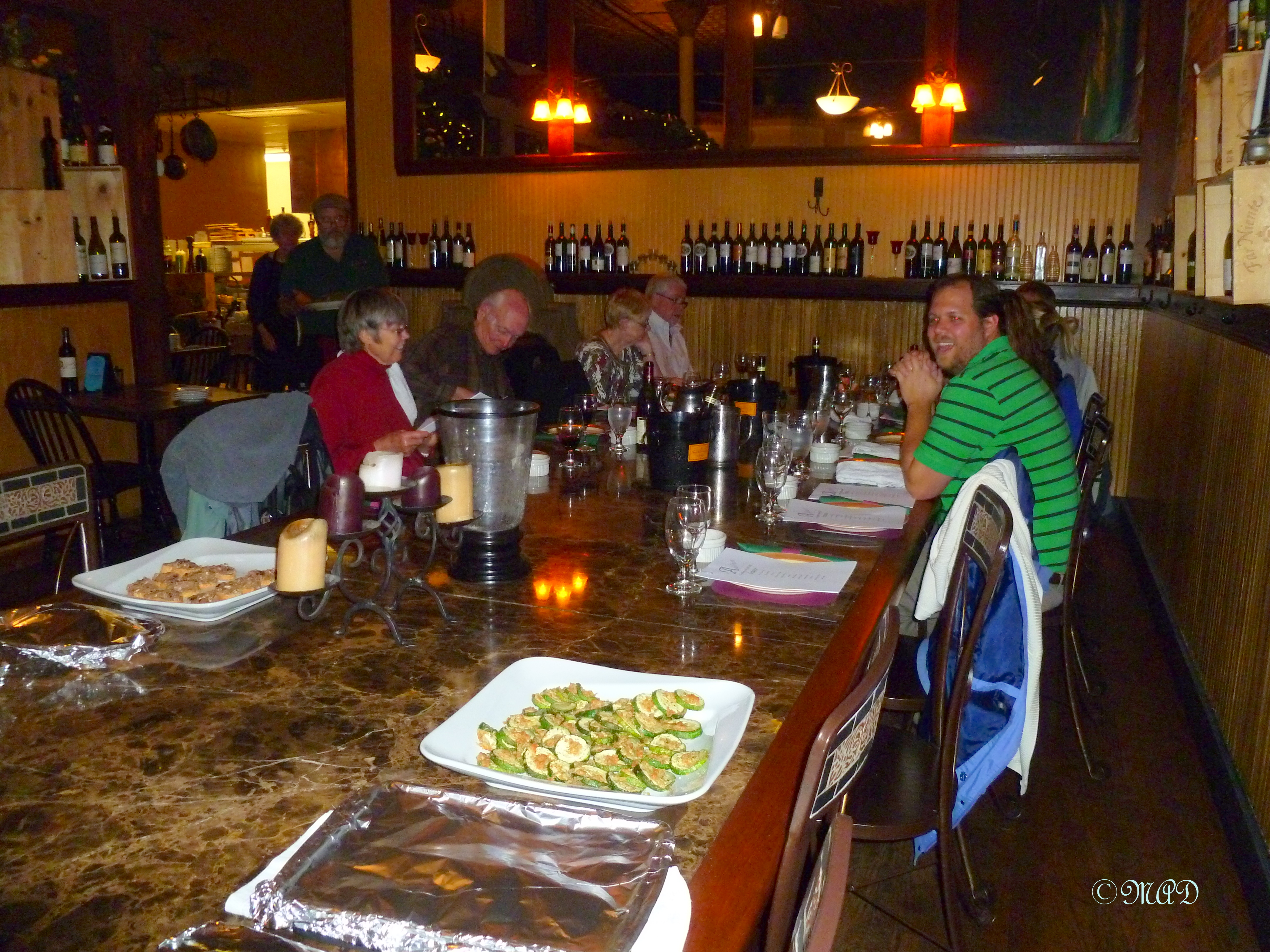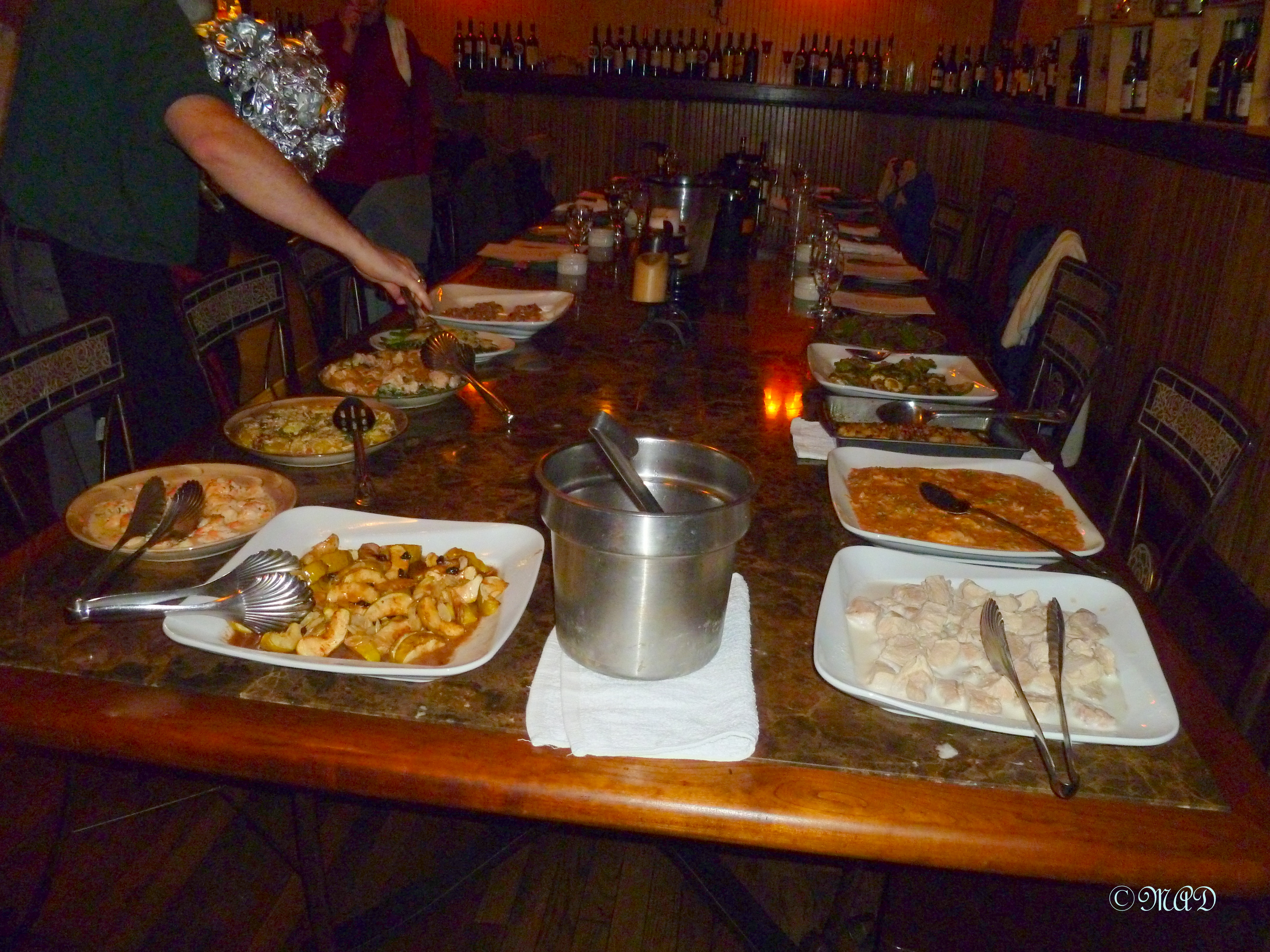 Adelino’s is a Spanish Tapas style restaurant and has been a huge success with the University students who live nearby.  I have eaten there before several times and always had delicious food.  They also have a dinner theatre that they present and a mystery dinner theater, jazz nights and wine tastings.  One time I went here with my daughter for a birthday night, when the cast was rehearsing their dinner theatre play and they sort of included us in the rehearsal, serenading us with an Irish happy birthday.  It was great fun!  The chef told us that he is putting on a special play for the holidays, which he has been writing himself.  I’ve noticed on their website that they have many Cooking With the Chef nights lined up for 2014 and I’m excited about giving several of them a try.  Some of the fellow participants with me were repeat cookers.  One couple said it was their 9th visit.