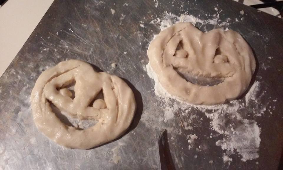 My oops photo moment – I so proudly made what I thought would be two nice sized pumpkin cookies for my grandkids out of Pillsbury cookie dough. Thirty fatal minutes later I had one GIANT cookie blob that covered the entire sheet! Lesson learned – use my old stand by butter cookie recipe next time! This is the before shot….